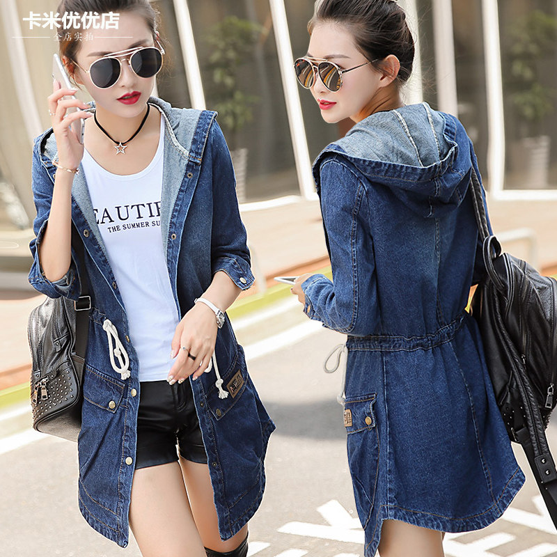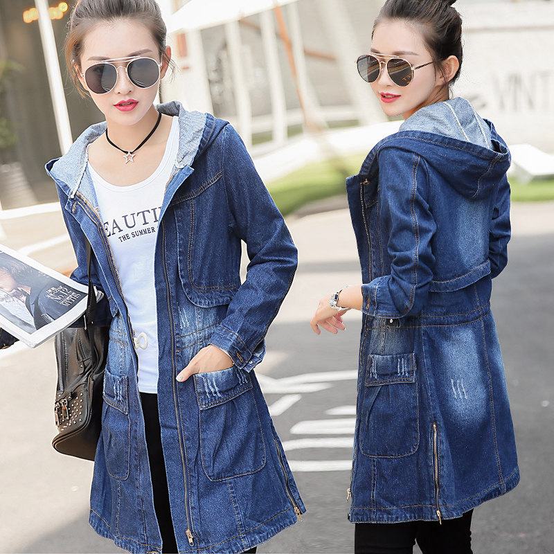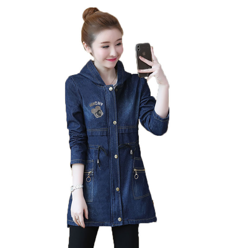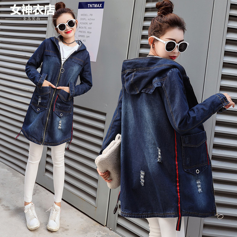 时尚大码胖妹妹牛仔外套女2025长袖连帽中长款显瘦韩版休闲风衣潮