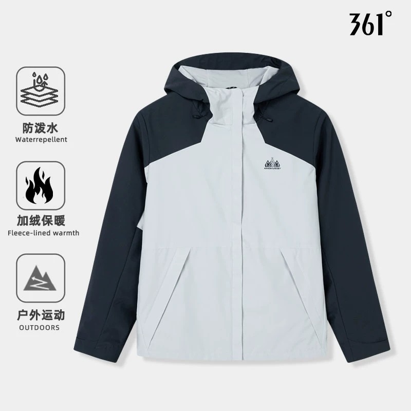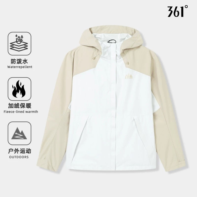 361度正品女款2025年春季新款休闲百搭简约宽松连帽绒里风衣外套