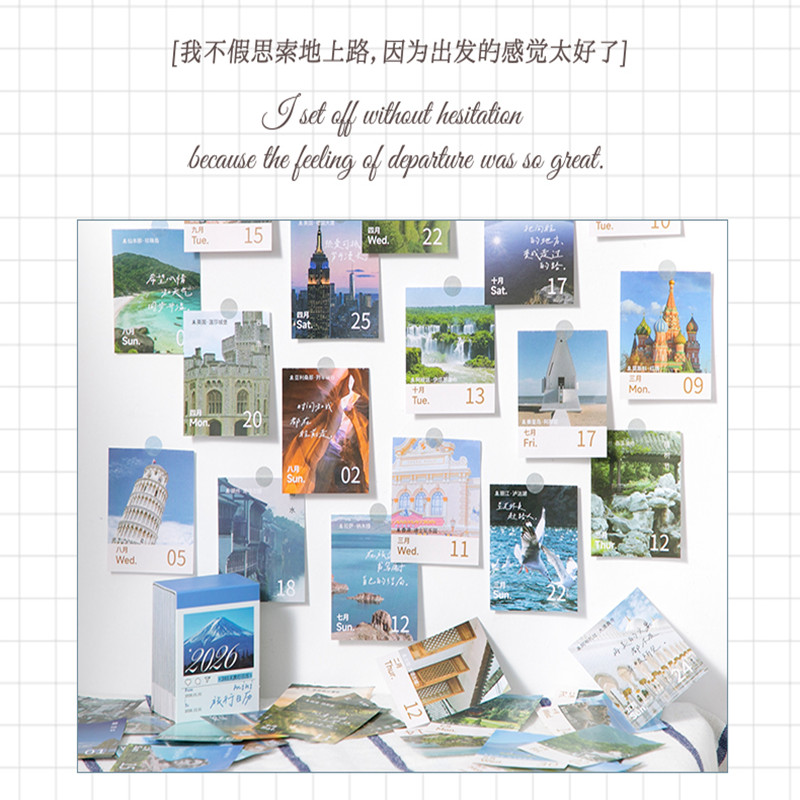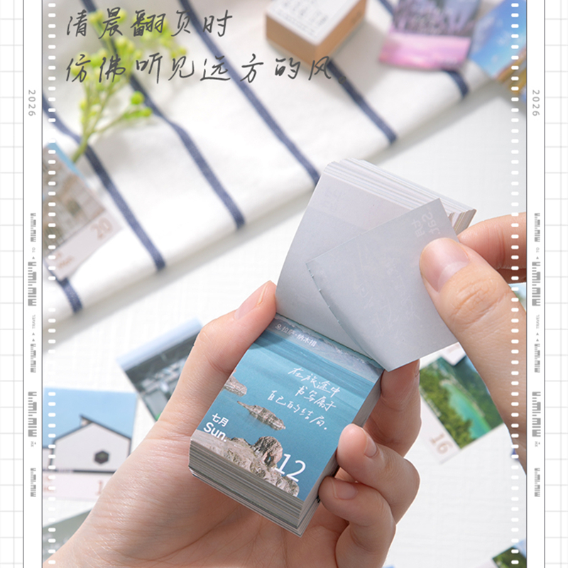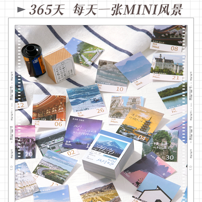 (mini版日付旅行台历)2026年全年365天掌中宝迷你版手账式DIY日历便携小本台历可撕活页摆件课桌装饰神器