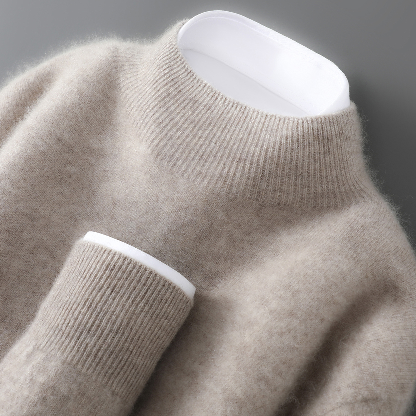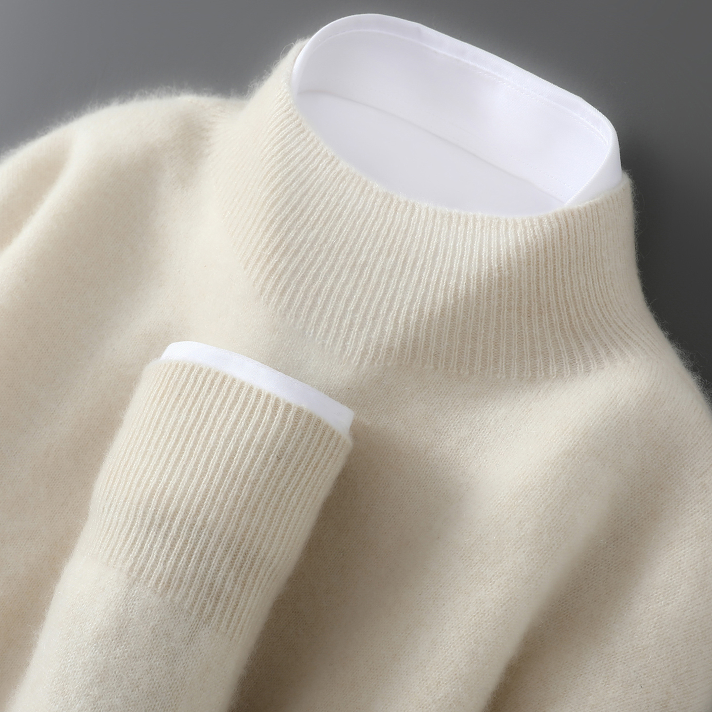 秋冬新款100%纯羊毛衫男士半高领针织套头毛衣休闲宽松无缝羊绒衫