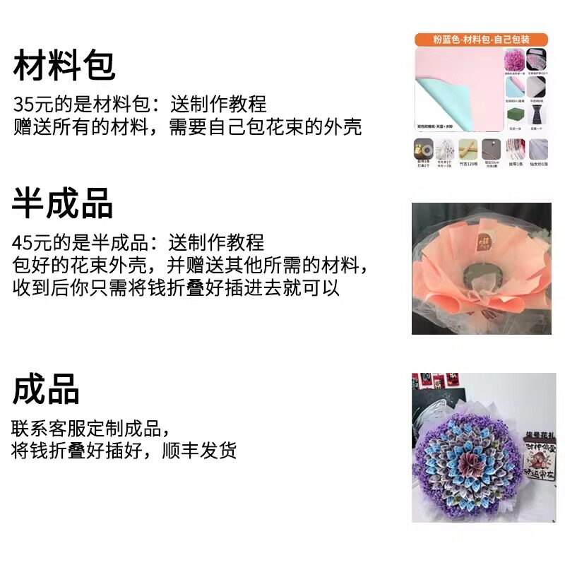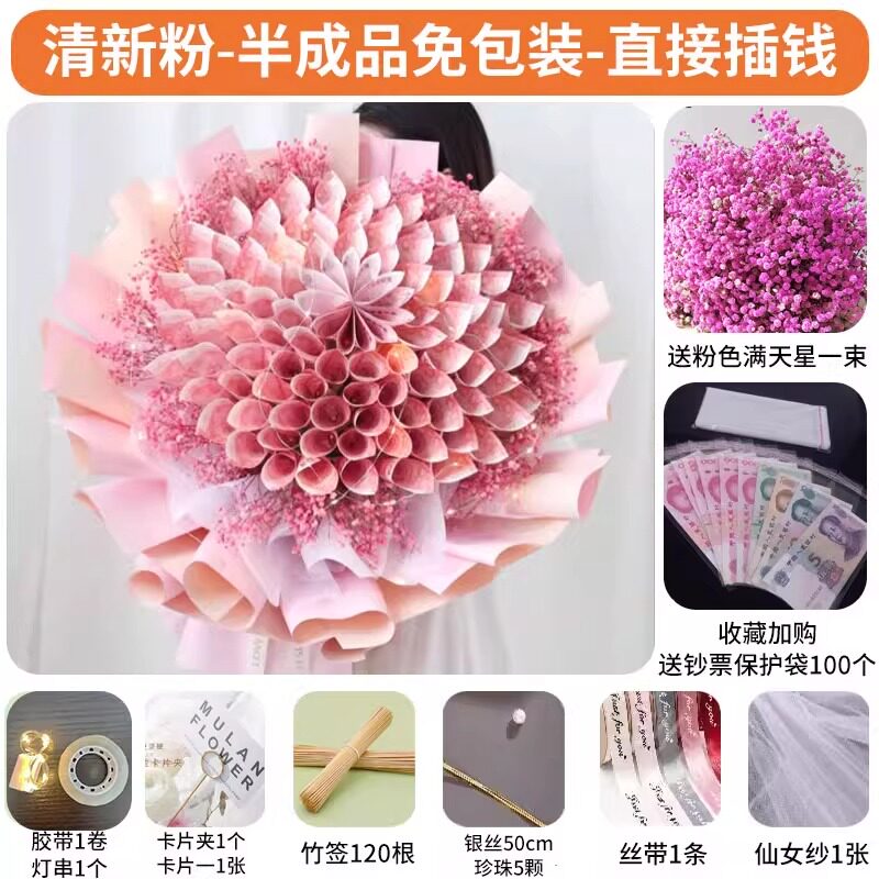 有钱花束成品材料包人民币钞票全套diy半成品包装生日礼物花束壳