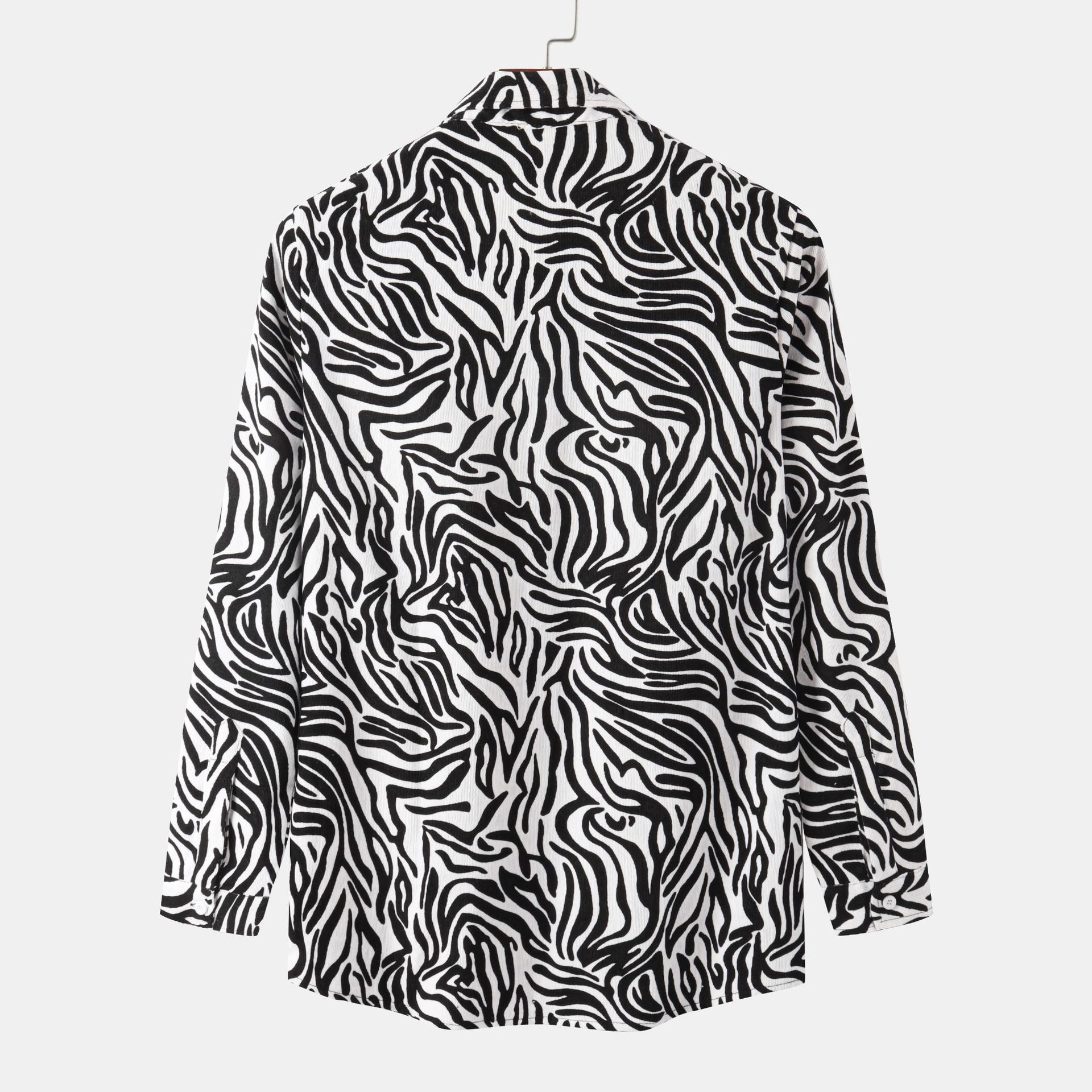 斑马纹衬衫男长袖秋冬新款高级感花衬衣免烫斑马条纹寸衫宽松