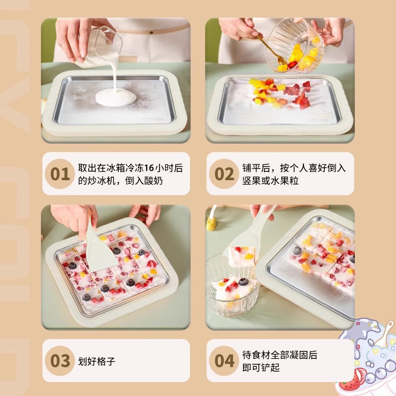 儿童炒酸奶机家用小型不锈钢炒冰机多功能商用水果夜市摆摊自制