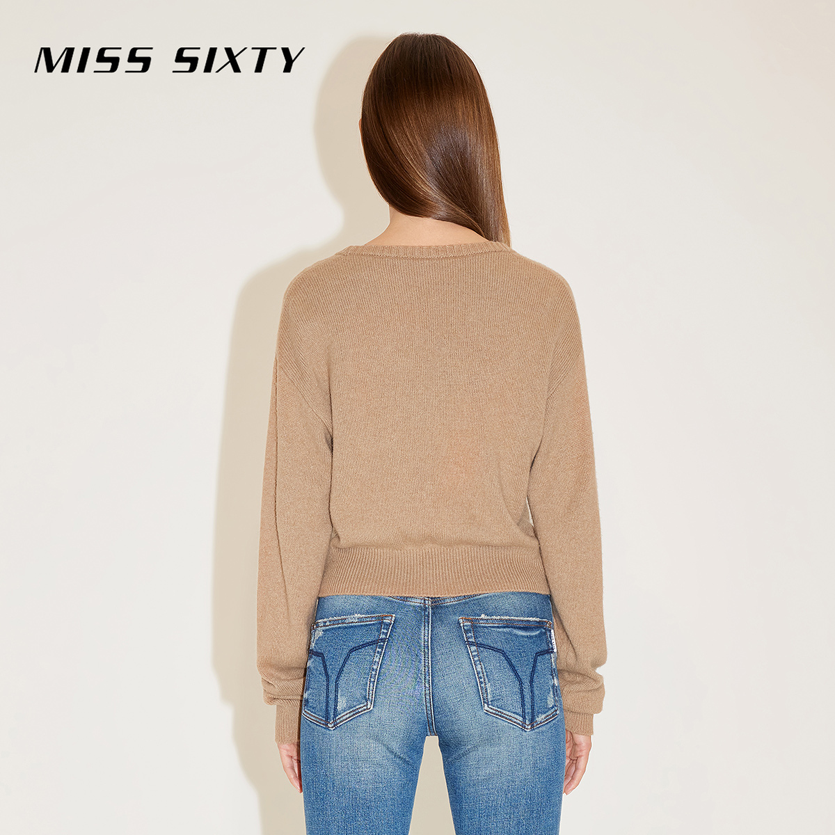 【保暖羊毛羊绒】Miss Sixty针织衫外套女气质法式V领提花短毛衣