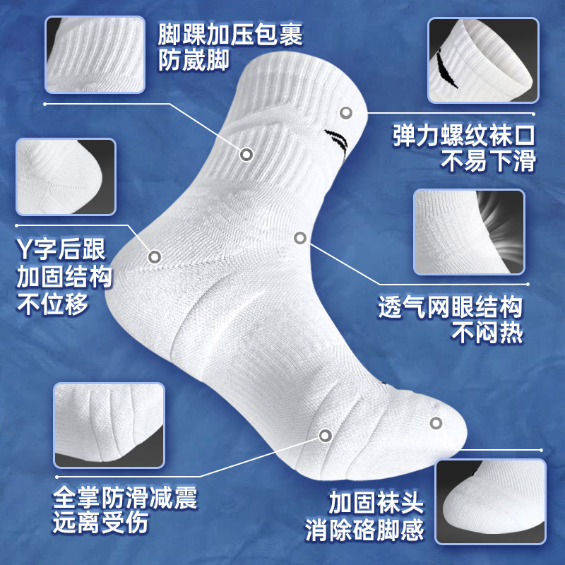 李宁篮球袜子男款专业运动袜中筒cba青少年美式精英袜长筒毛巾底