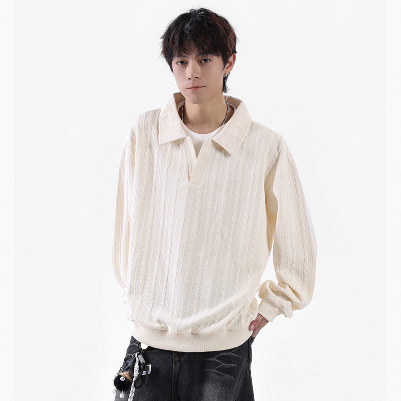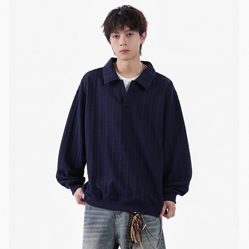 迈特优美式长袖卫衣男款2025年春秋季翻领POLO衫宽松大码休闲上衣
