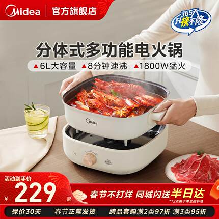 美的电火锅电煮锅家用电煮锅鸳鸯分体式多功能电热锅不粘锅烹饪机