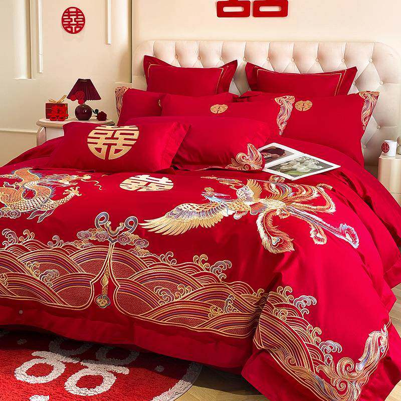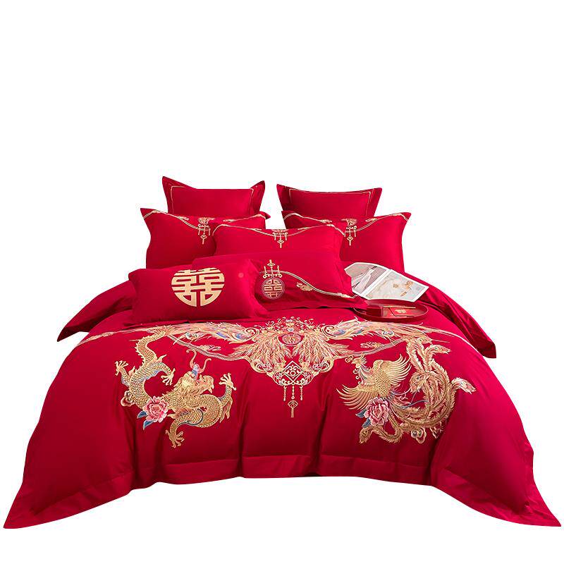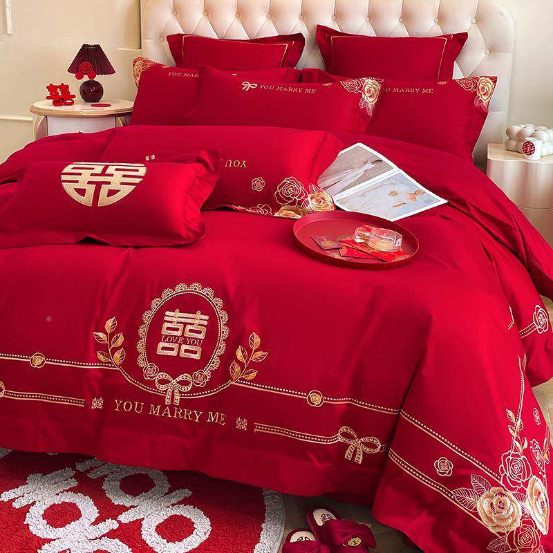 2U喜8K180支婚四件套纯棉婚庆房F5659陪床单被套结嫁婚被床上