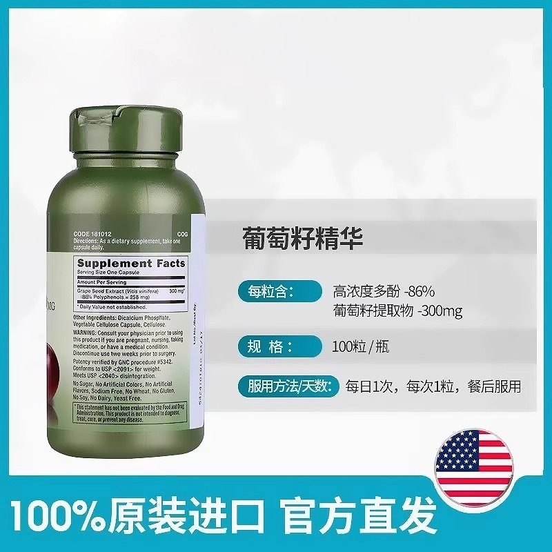 GNC葡萄籽精华300mg100粒高含量浓缩精华多酚原花青素搭白藜芦醇