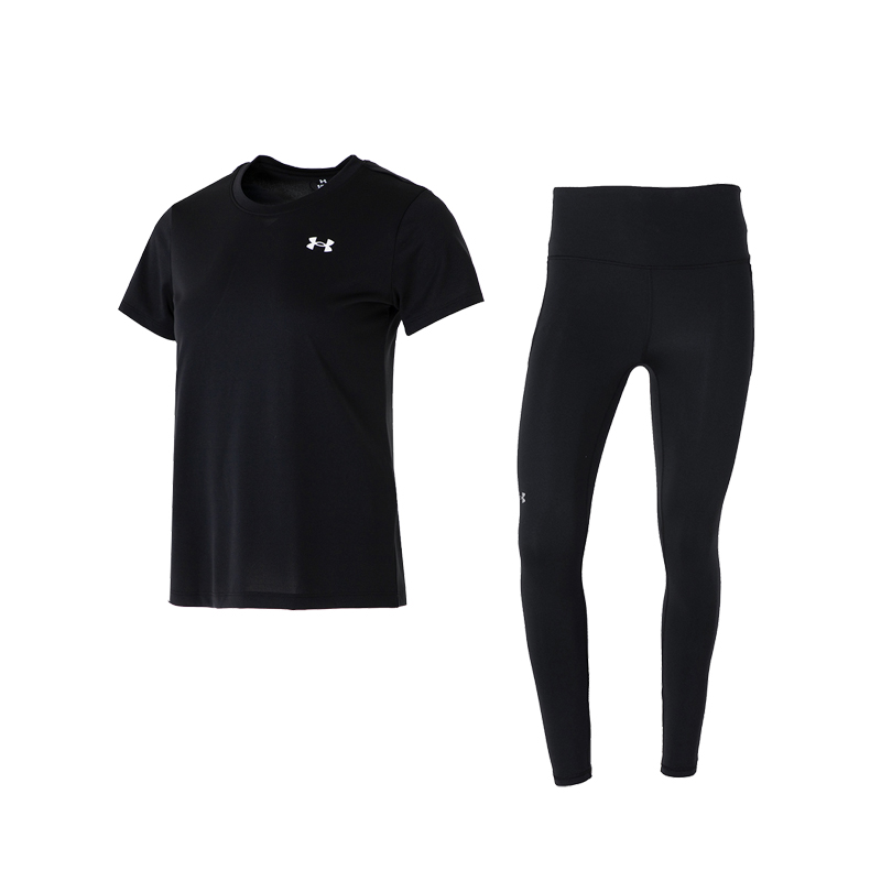 ua安德玛运动套装女秋季训练短袖t恤舒适套头衫紧身透气弹力长裤