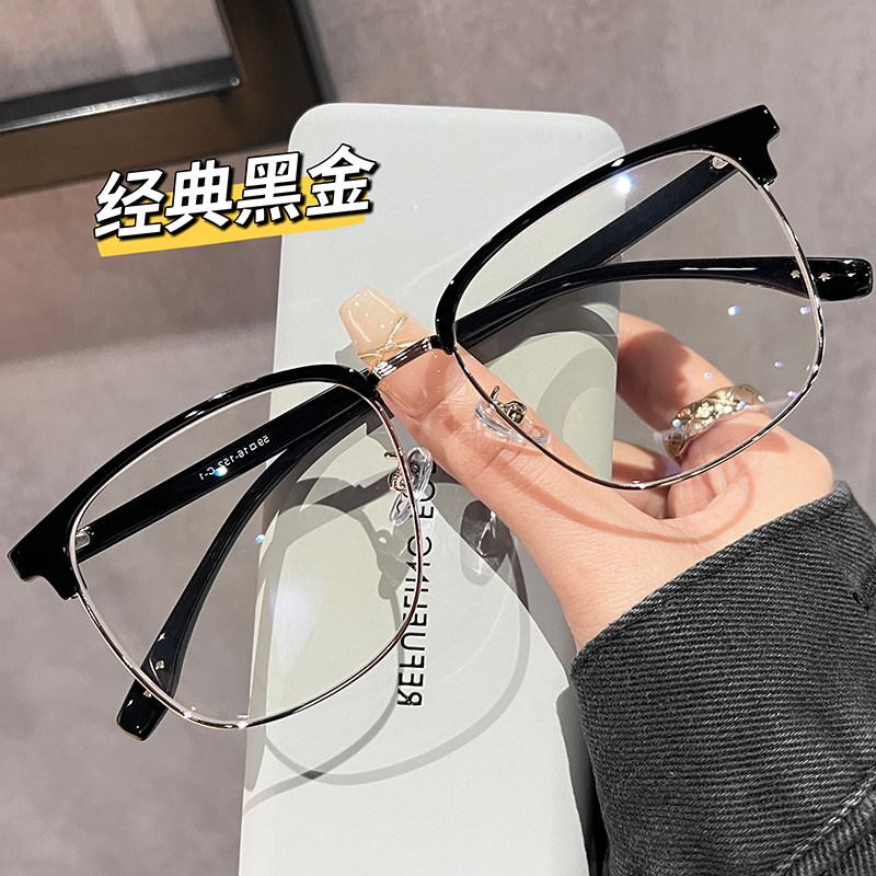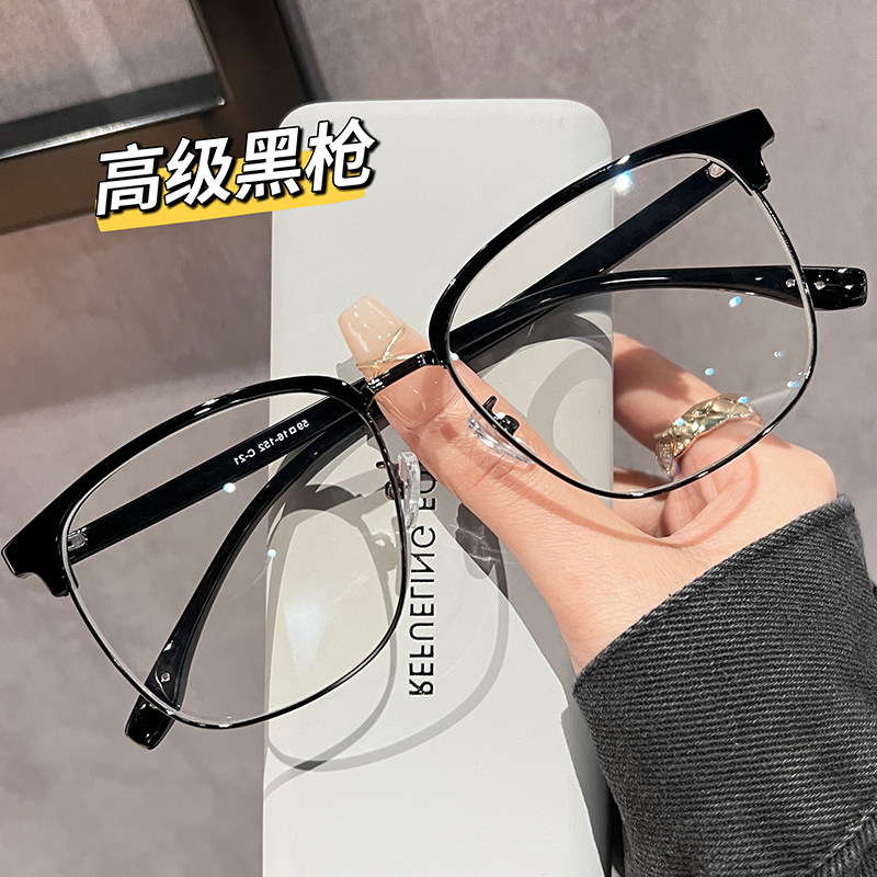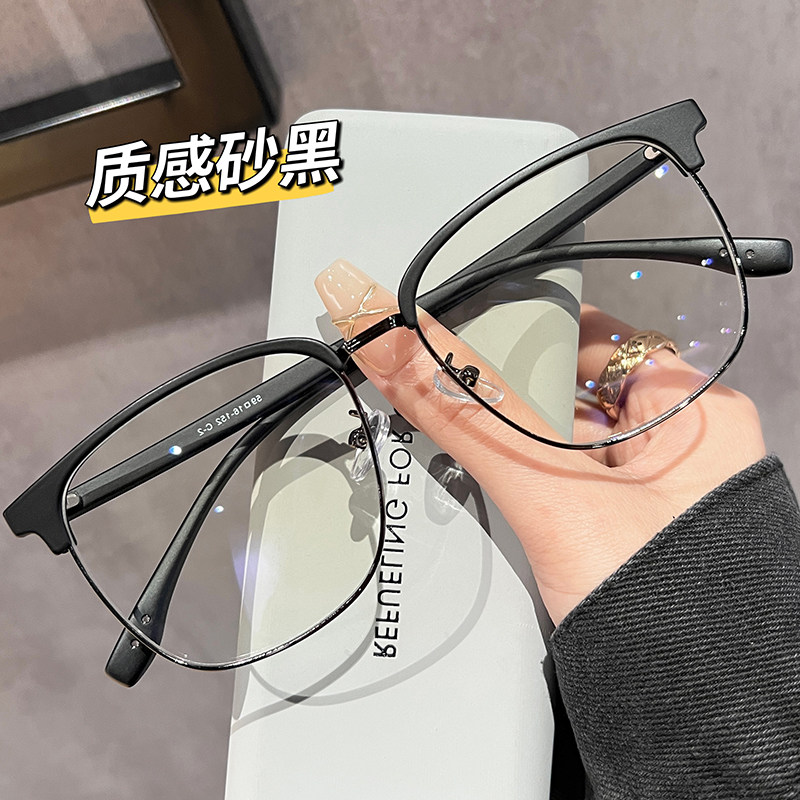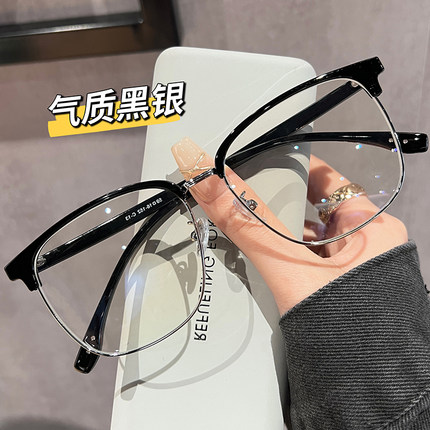 初明眉线半框理工男友风眼镜近视