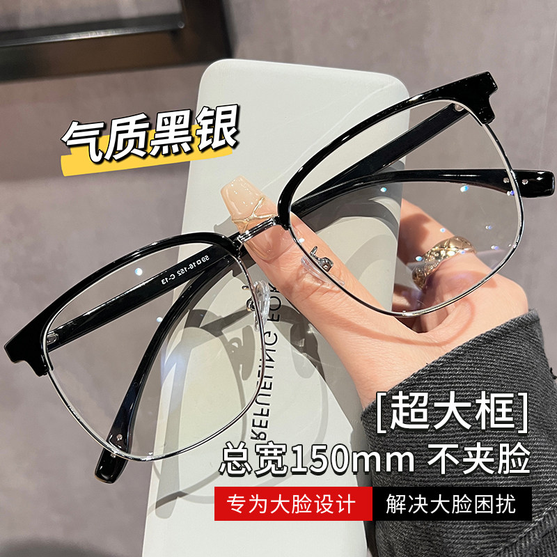 超大框宽150mm斯文半框眼镜男近视可配度数素颜显脸小眼睛镜架女