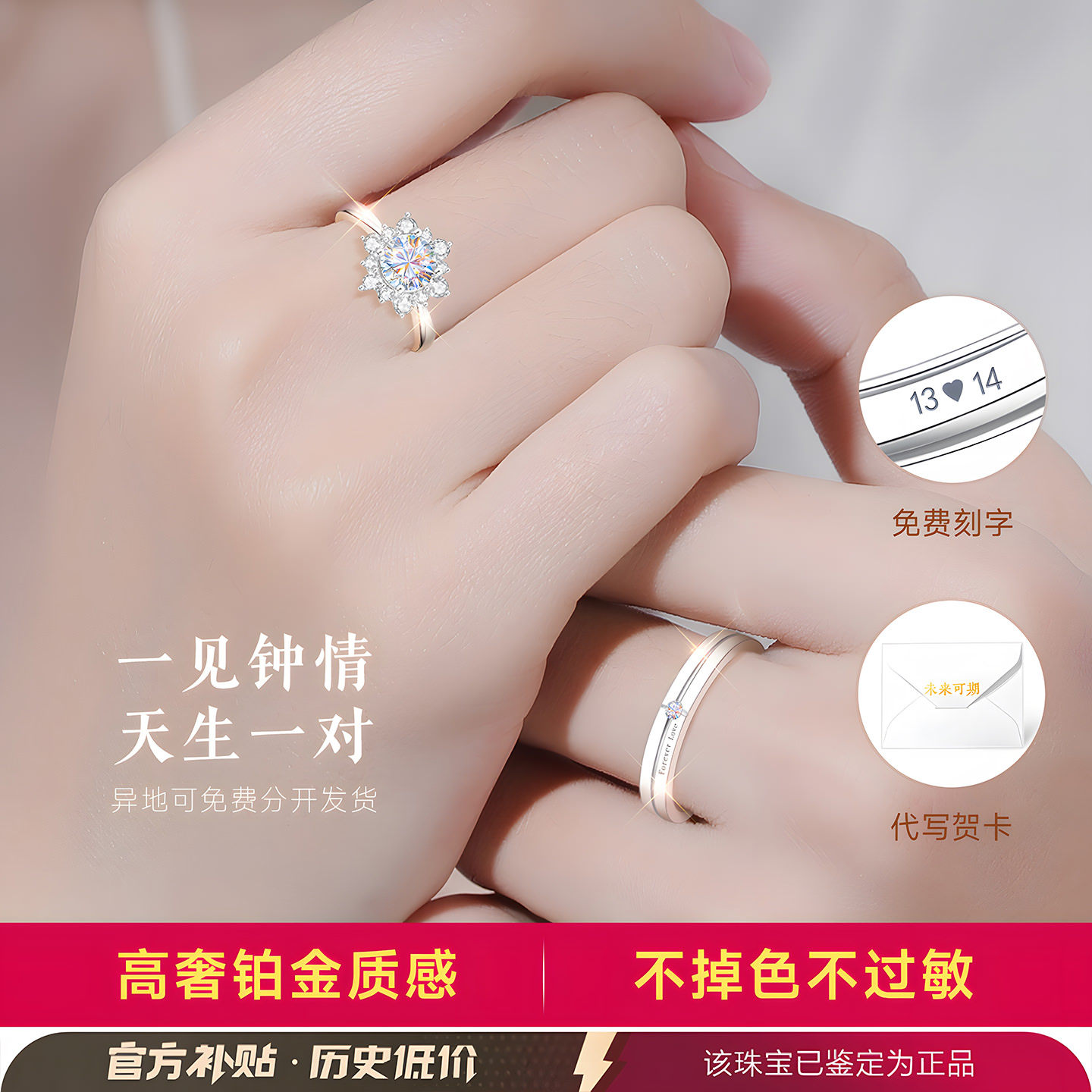 银999纯银戒指女情侣对戒情侣款一对莫桑石钻戒结婚婚戒求婚订婚