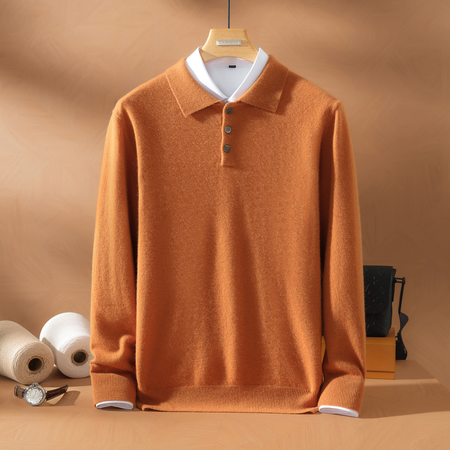 统悦100%纯山羊绒衫男POLO领毛衣