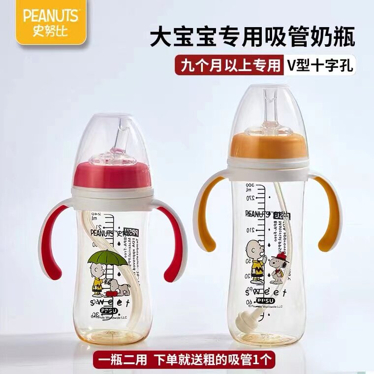 史努比宽口径奶瓶通用婴儿硅胶奶嘴一体式鸭嘴水杯吸管配件重力球