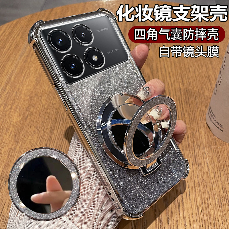 适用红米K70手机壳小米K70pro保护K70e硅胶套redmik镜头全包5g防摔透明软壳带支架redmi新款por高级感pr0镜子