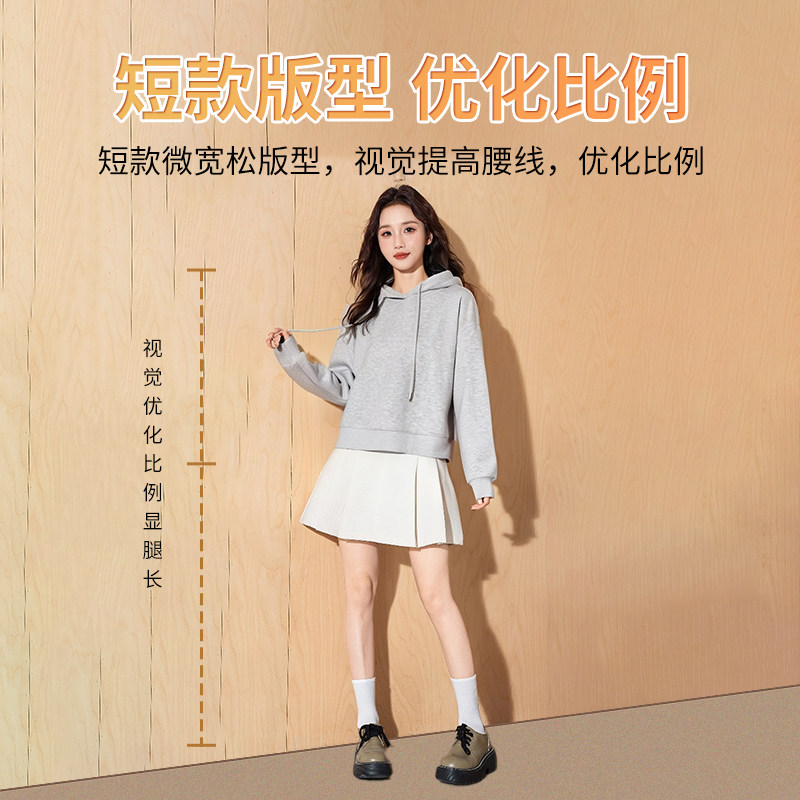班尼路灰色加绒卫衣外套女连帽短款加厚保暖2025新款小个子上衣H