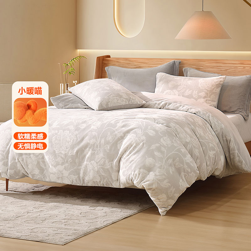 水星家纺牛奶绒四件套A类抗静电