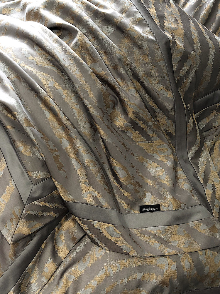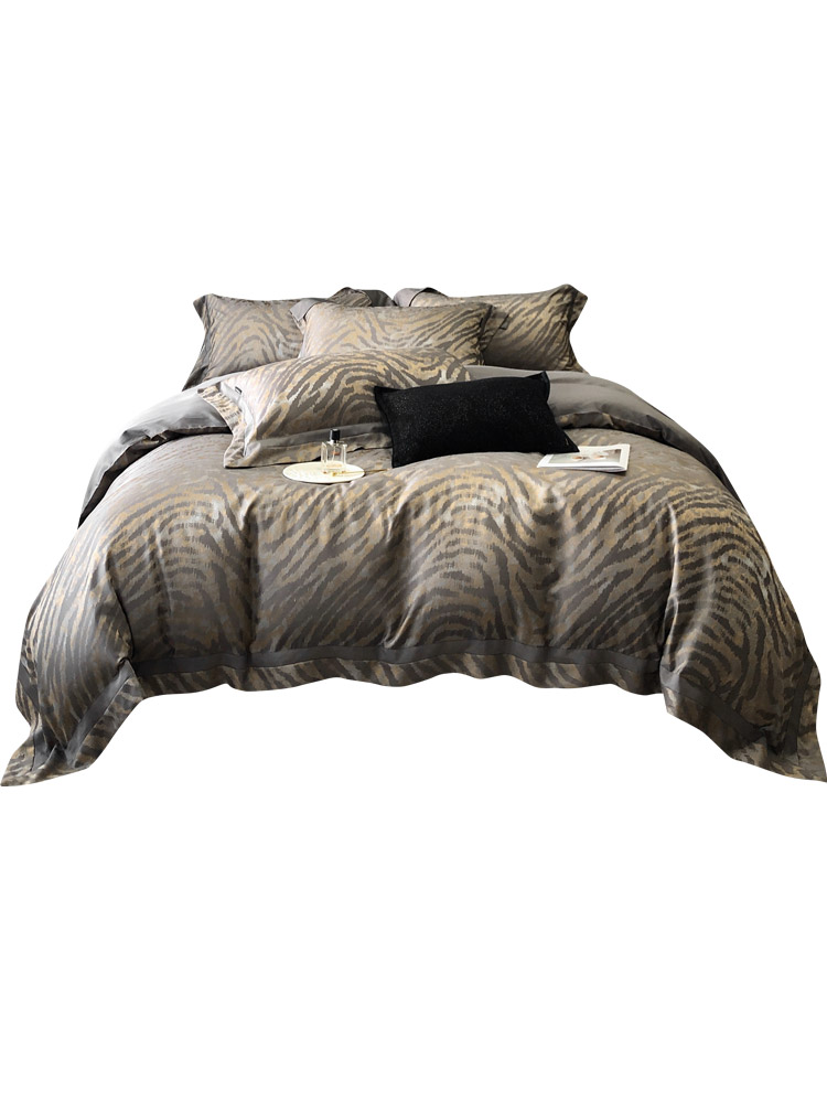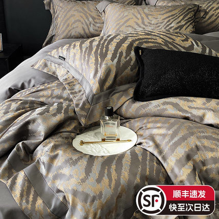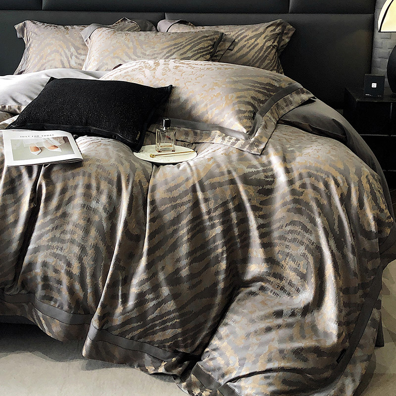 四季款天丝棉床单四件套高精密提花轻奢宽边被套床上用品灰米金色