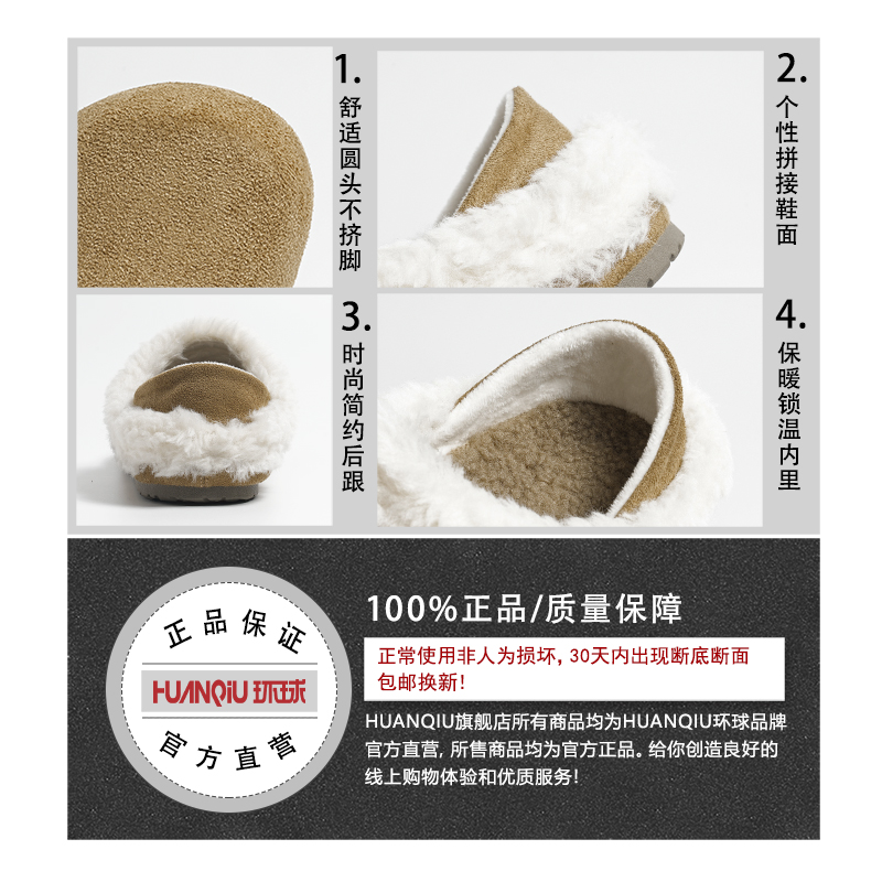 环球两穿包头勃肯鞋女2025新款冬季加绒保暖软底棉鞋外穿毛毛鞋子