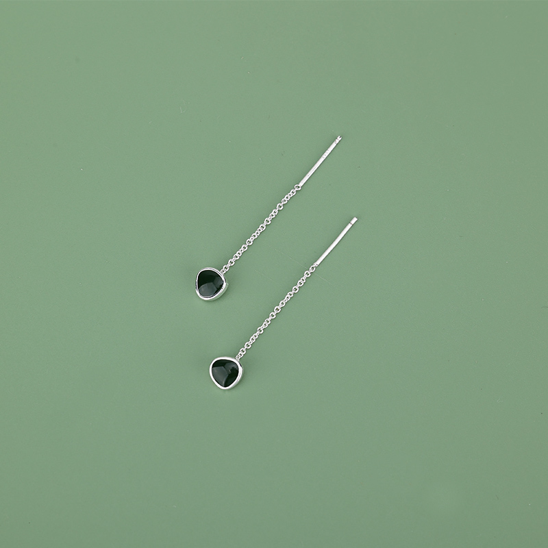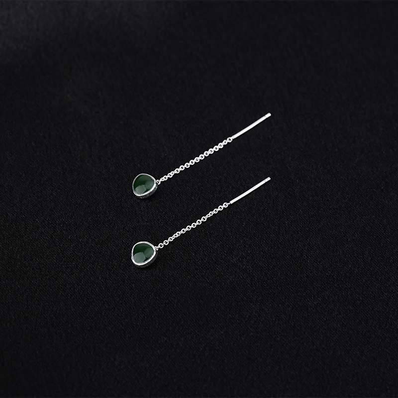 s925纯银滴釉绿色牛油果耳线女