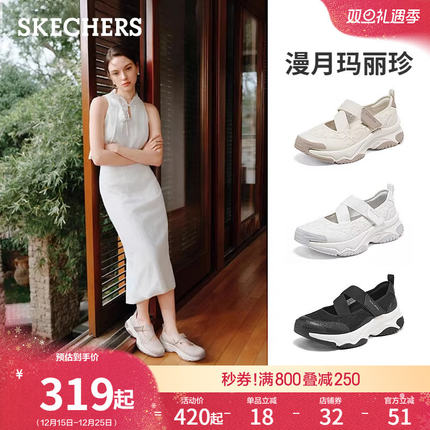 斯凯奇漫月玛丽珍|女鞋一脚蹬蕾丝浅口单鞋厚底运动休闲鞋百搭
