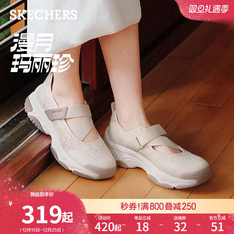 斯凯奇漫月玛丽珍蕾丝厚底时尚
