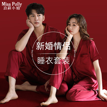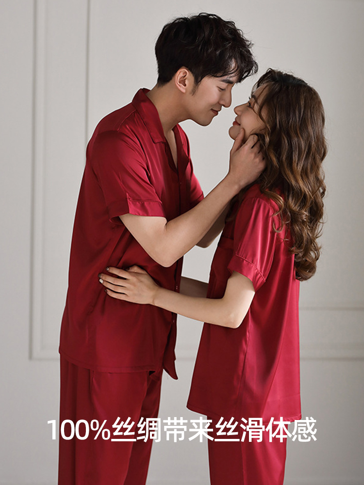 红色结婚睡衣新婚情侣套装短袖高级感冰丝绸家居服套装男女士陪嫁