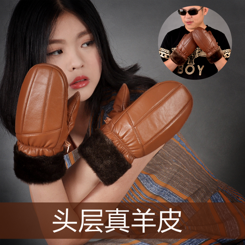 新款绵羊皮秋冬季保暖连指真皮手套男女士加绒加厚户外骑车棉手套