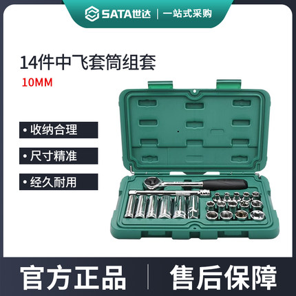 世达14件中飞套筒组合套装汽修修车工具套装棘轮扳手全套09523