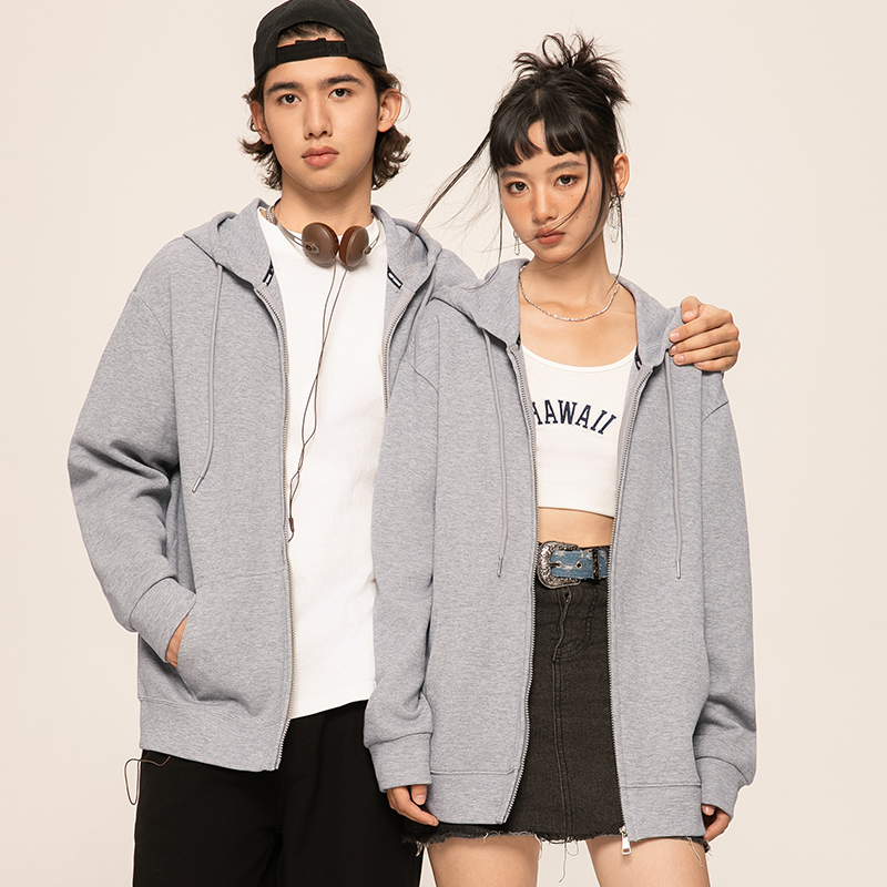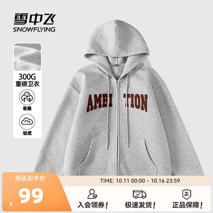 雪中飞灰色卫衣男初秋2025新款美式慵懒风开衫学生休闲连帽外套PC