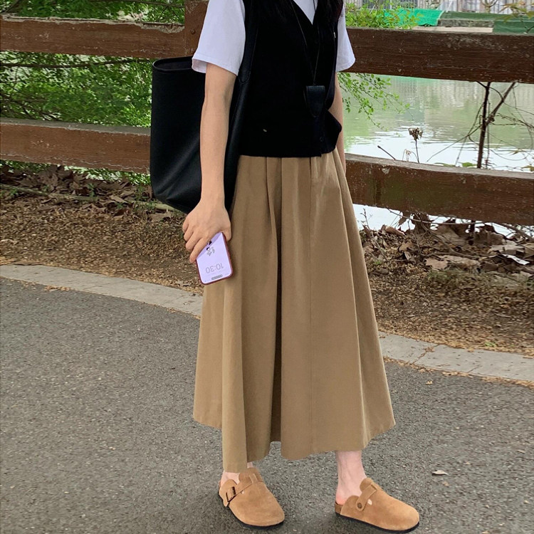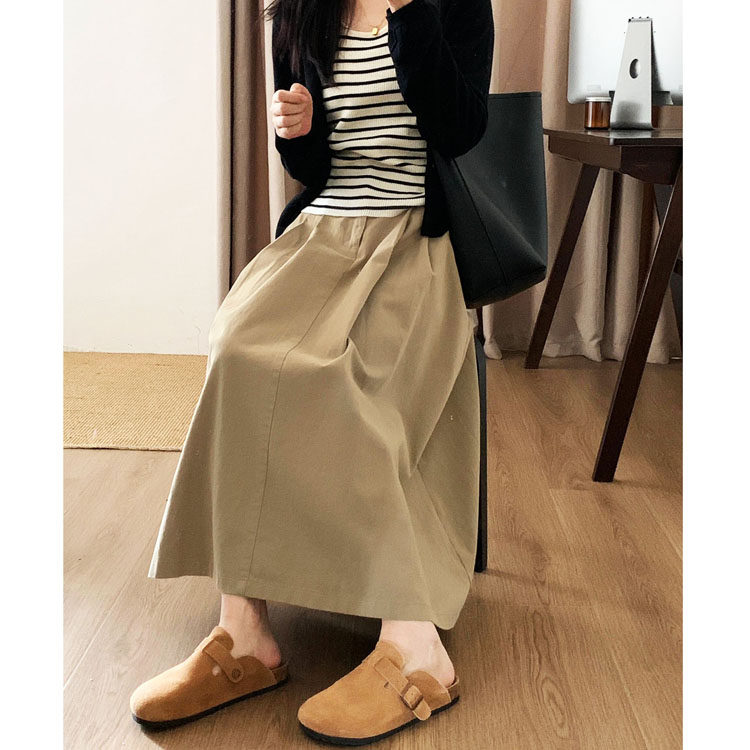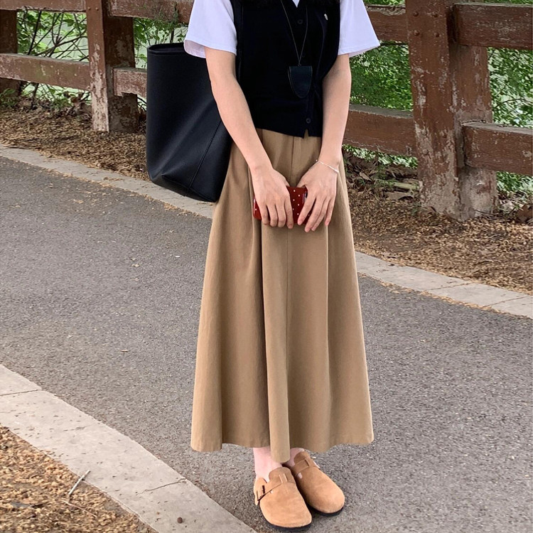 梨型身材休闲工装半身裙女大码秋季胖妹妹mm宽松显瘦中长款a字裙