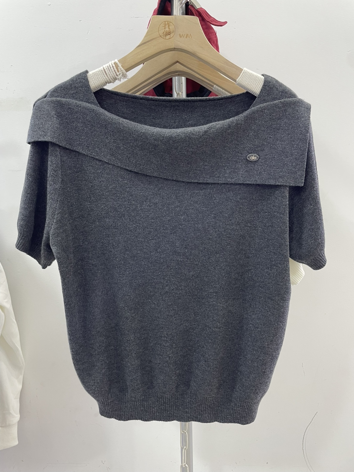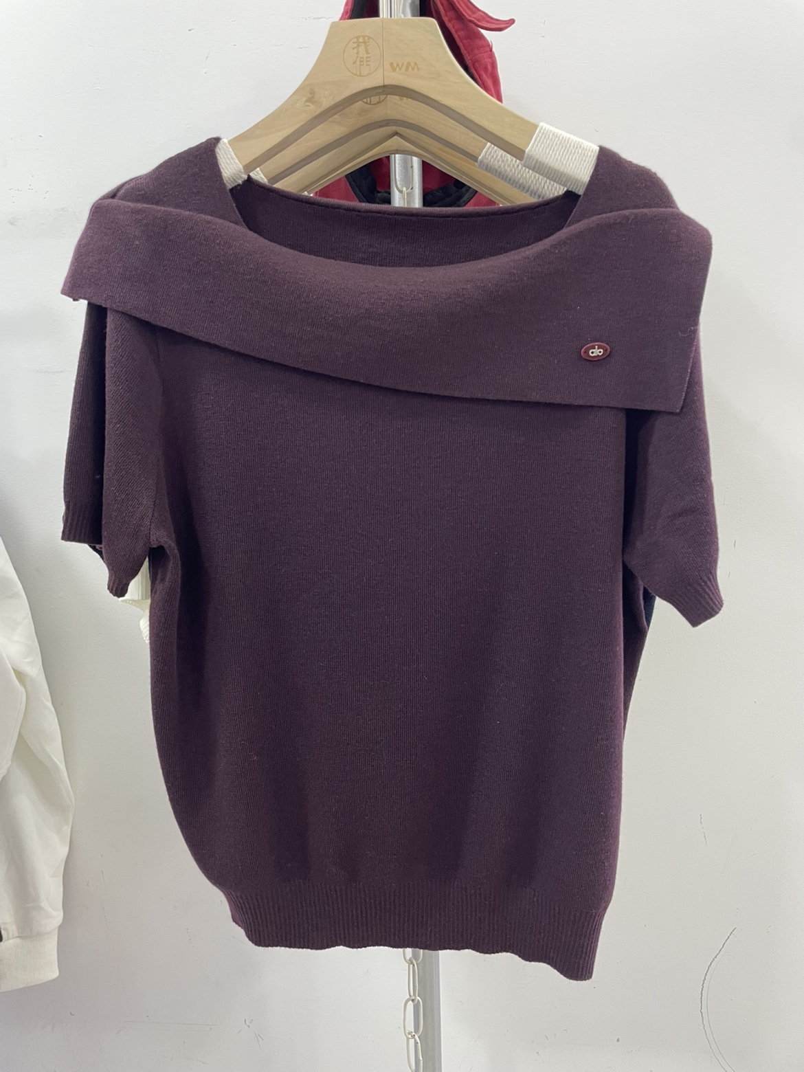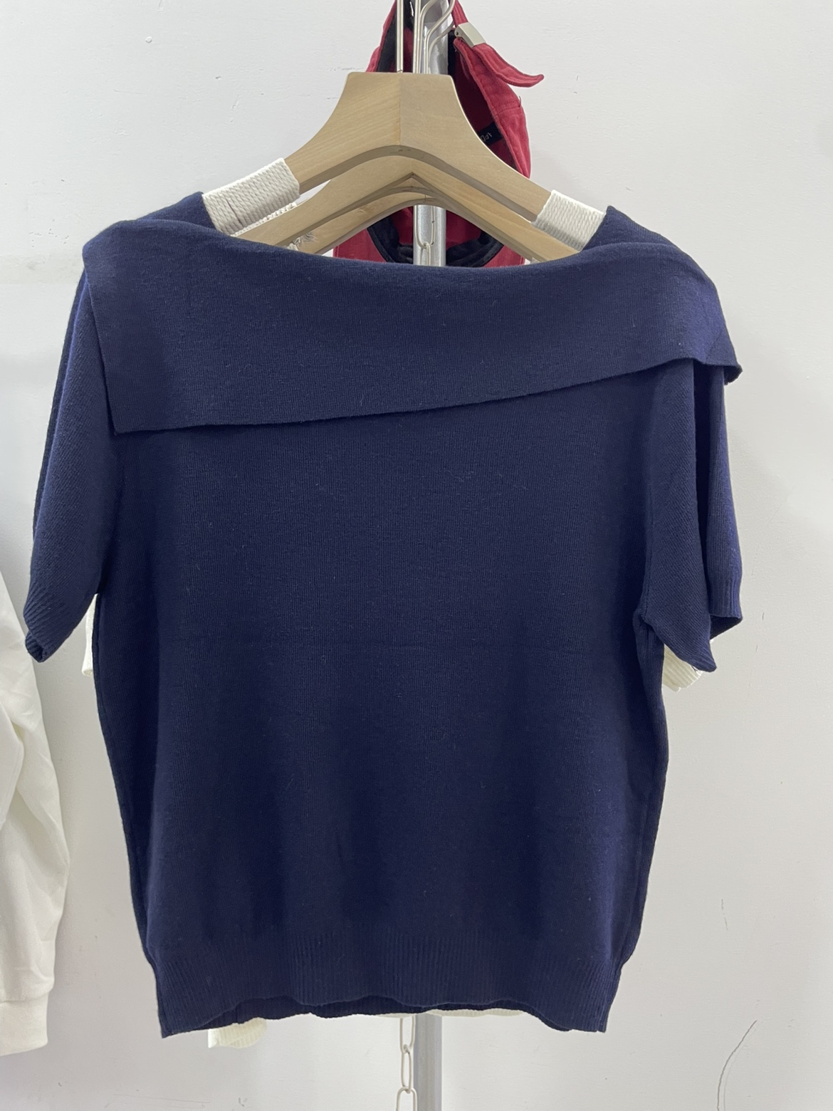 金迪雅83200正品一字领羊毛套头针织衫女秋冬新款翻边纯色打底衫
