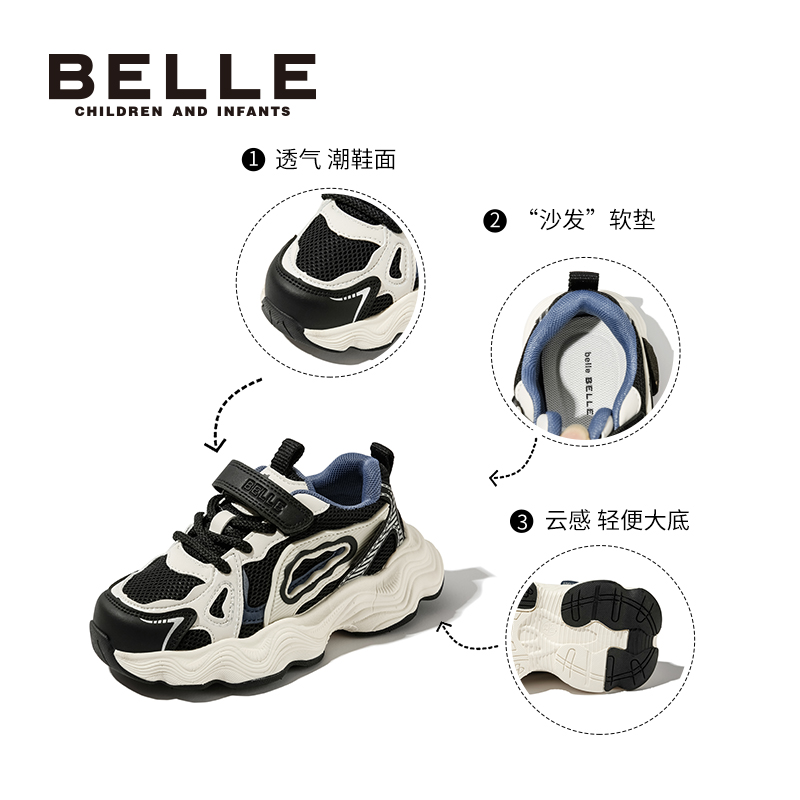 百丽童鞋女童运动鞋老爹鞋新款秋冬透气休闲鞋男童跑步鞋子中大童