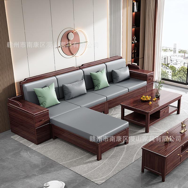 新中式乌金木沙发现代轻奢实木沙发别墅风大客厅冬夏两用组合家具