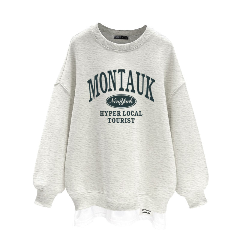 2025春秋冬季新款字母印花中长款加绒加厚宽松套头圆领卫衣女潮
