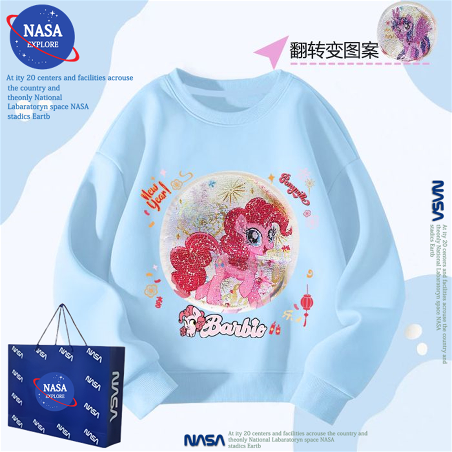 NASA小马宝莉亮片卫衣秋冬款儿童装变色衣服女孩洋气加绒加厚长袖
