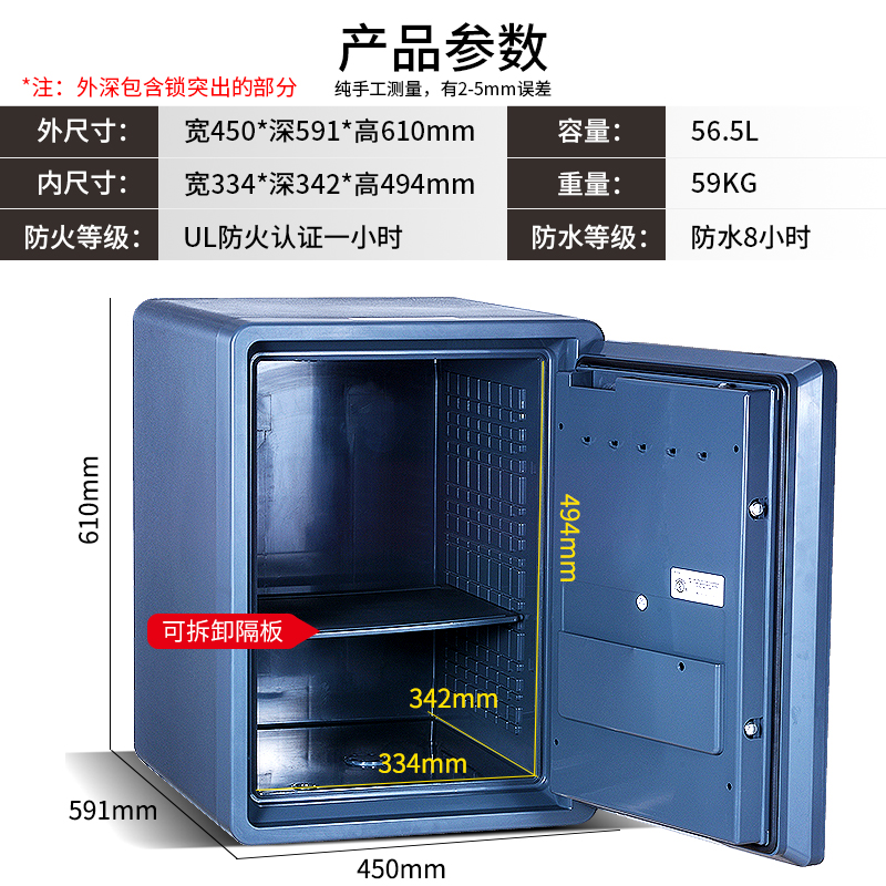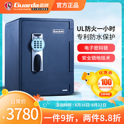 极速盾牌保险柜大k型办公保险箱防水防火UL认证家用入墙按键电子