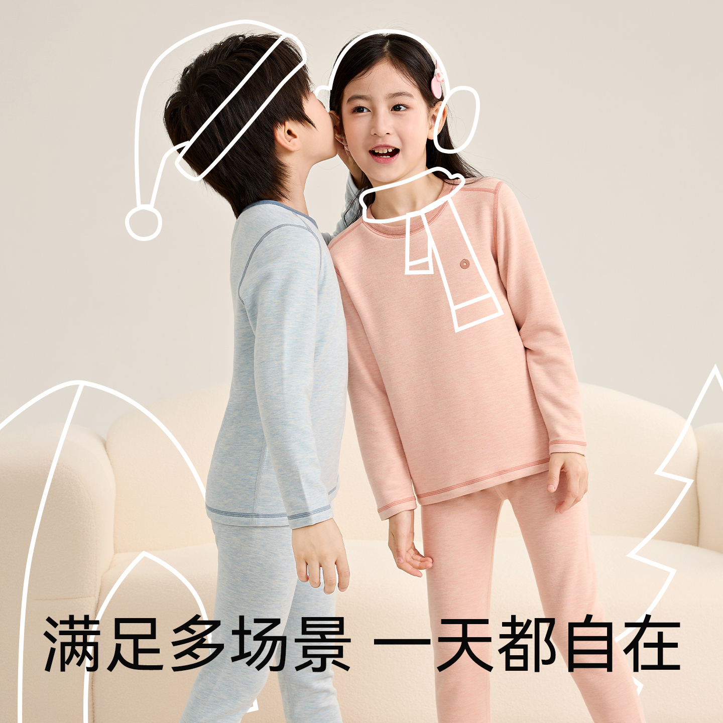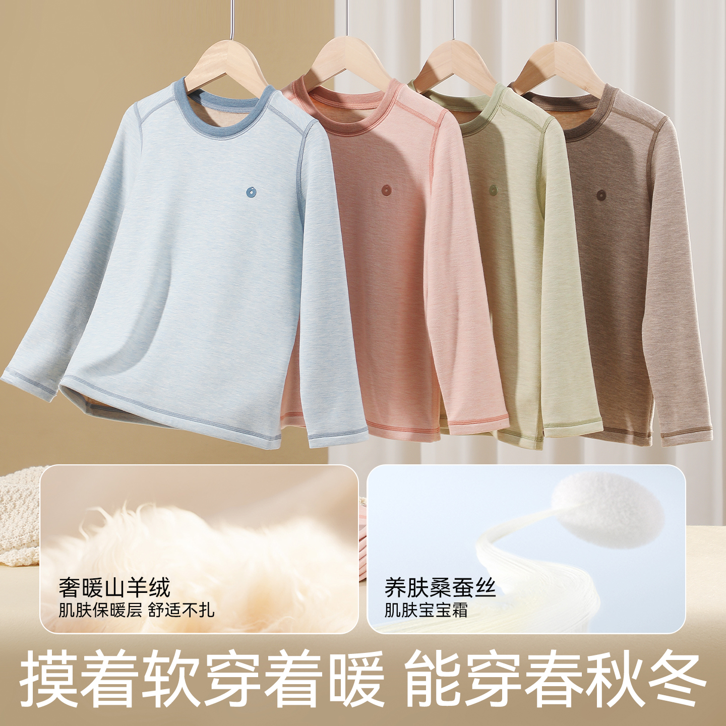 羊绒儿童保暖内衣秋冬女大童德绒发热蚕丝线衣裤男童秋衣秋裤套装