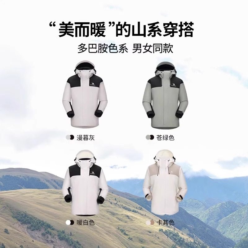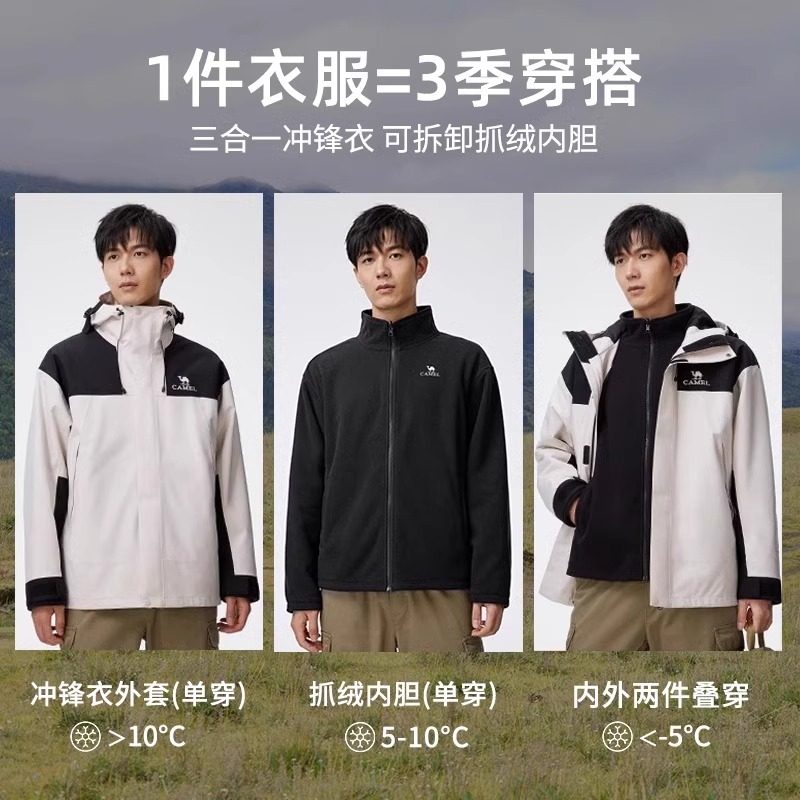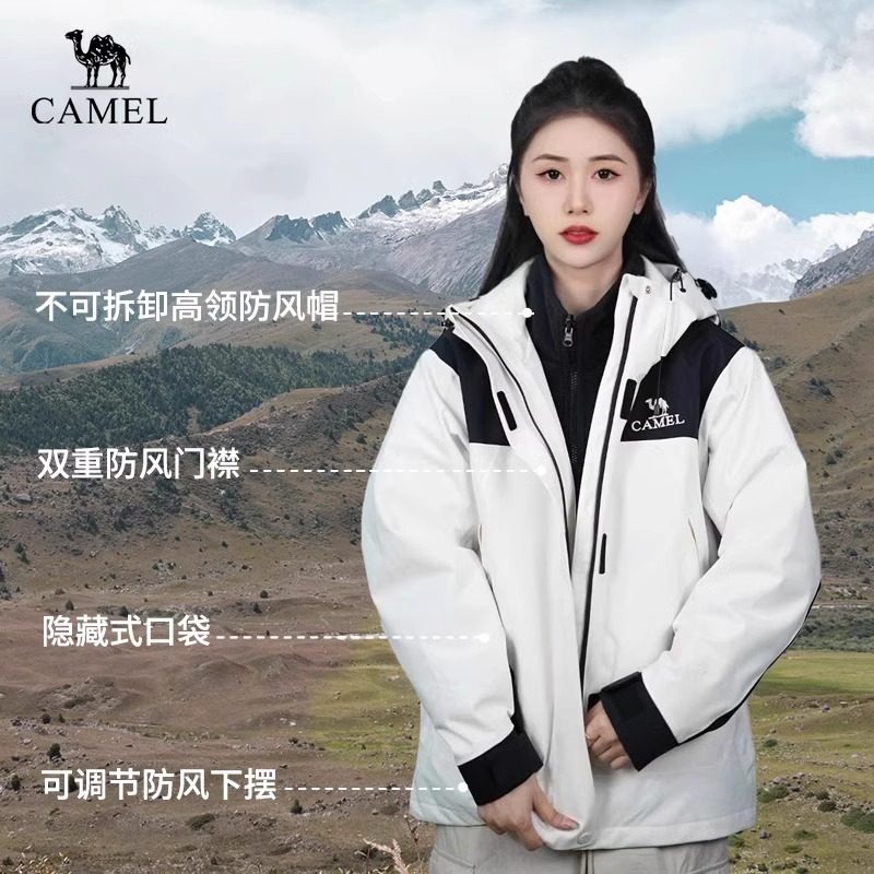 骆驼时尚拼色冲锋衣男女三合一可拆卸年冬新款防水登山服外套
