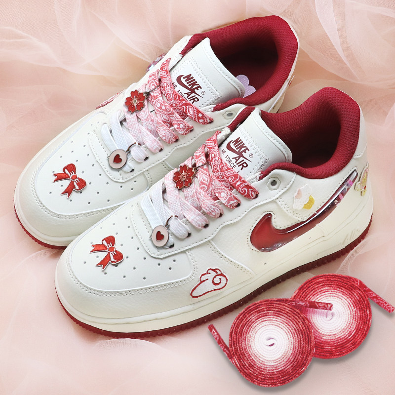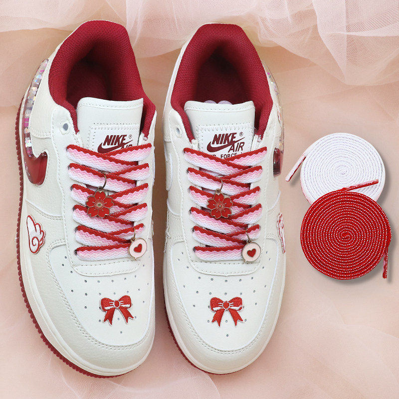 适配耐克空军一号情人节限定粉色酒红鞋带原装AF1板鞋白鞋绳配饰