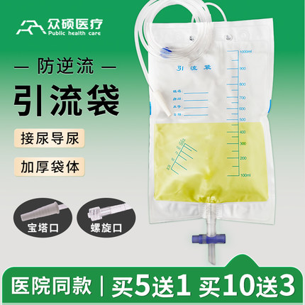 众硕医疗引流袋医用一次性使用胆汁加厚螺旋接口宝塔头导尿管尿袋