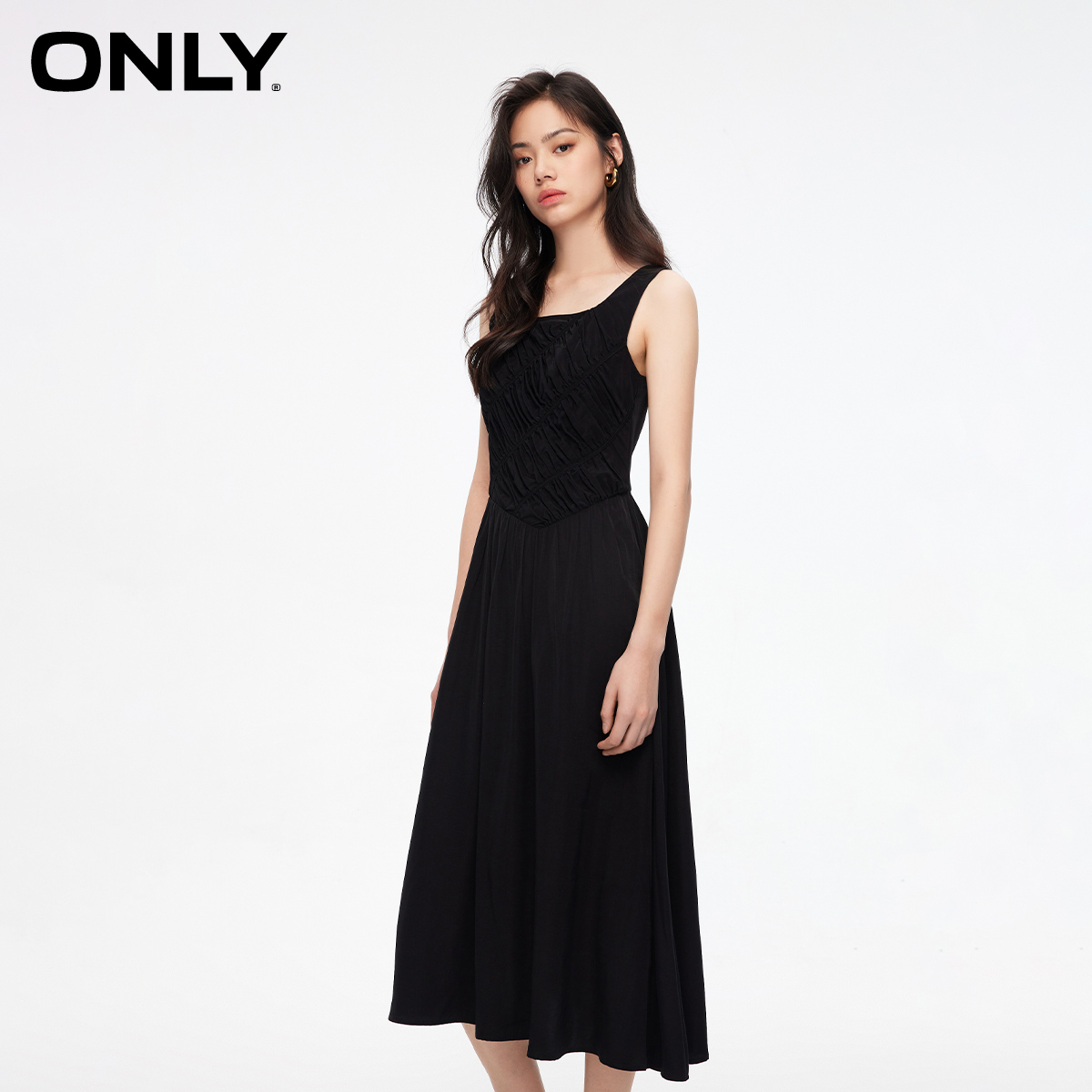 o区ONLY2025春夏新简约休闲百搭A字中长款吊带连衣裙女时尚