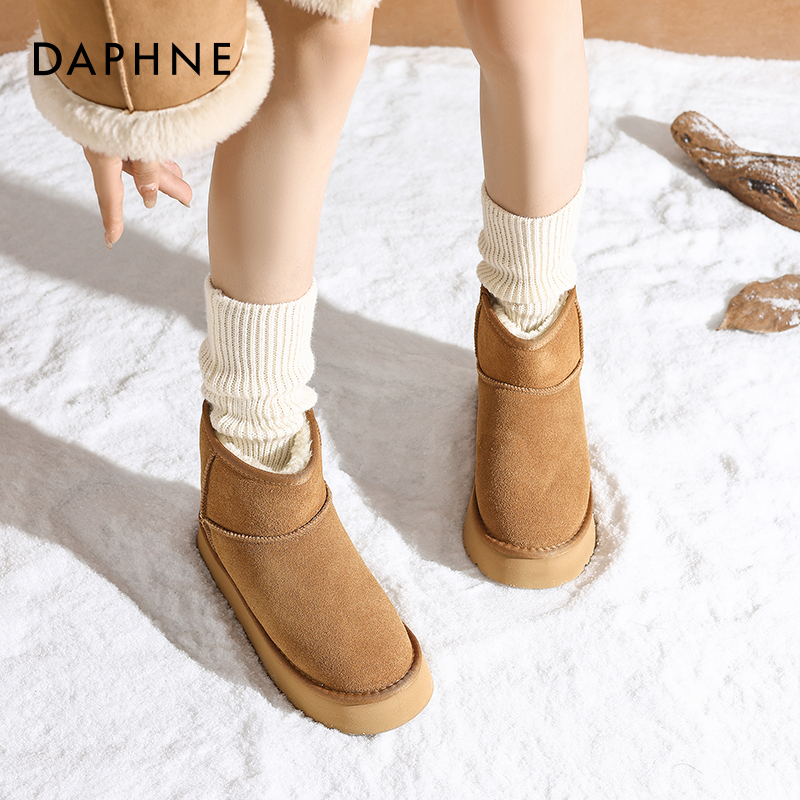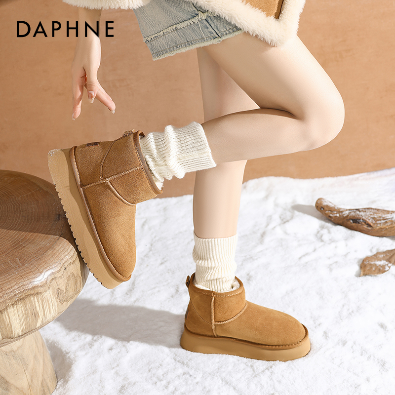 达芙妮雪地靴女厚底真皮加绒保暖