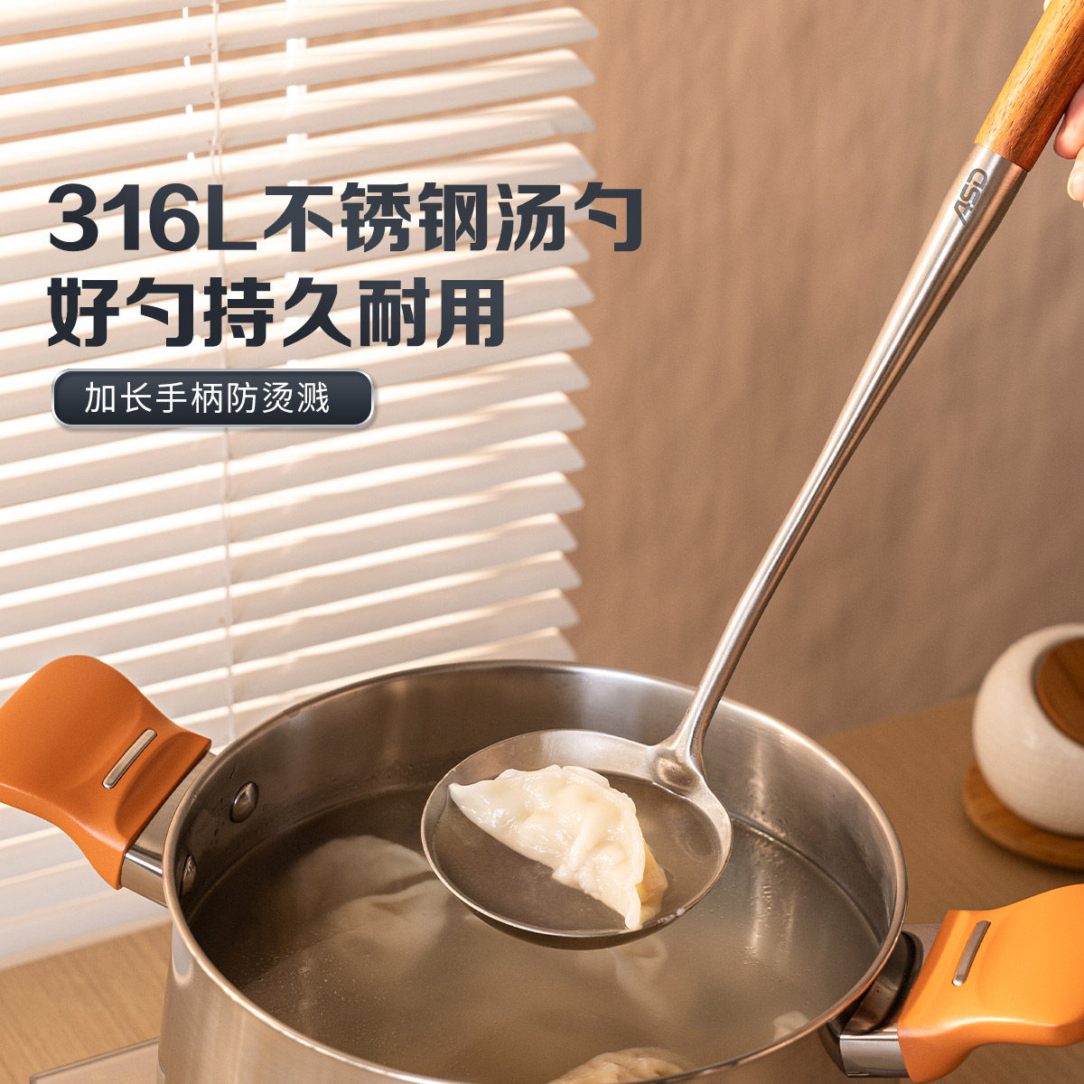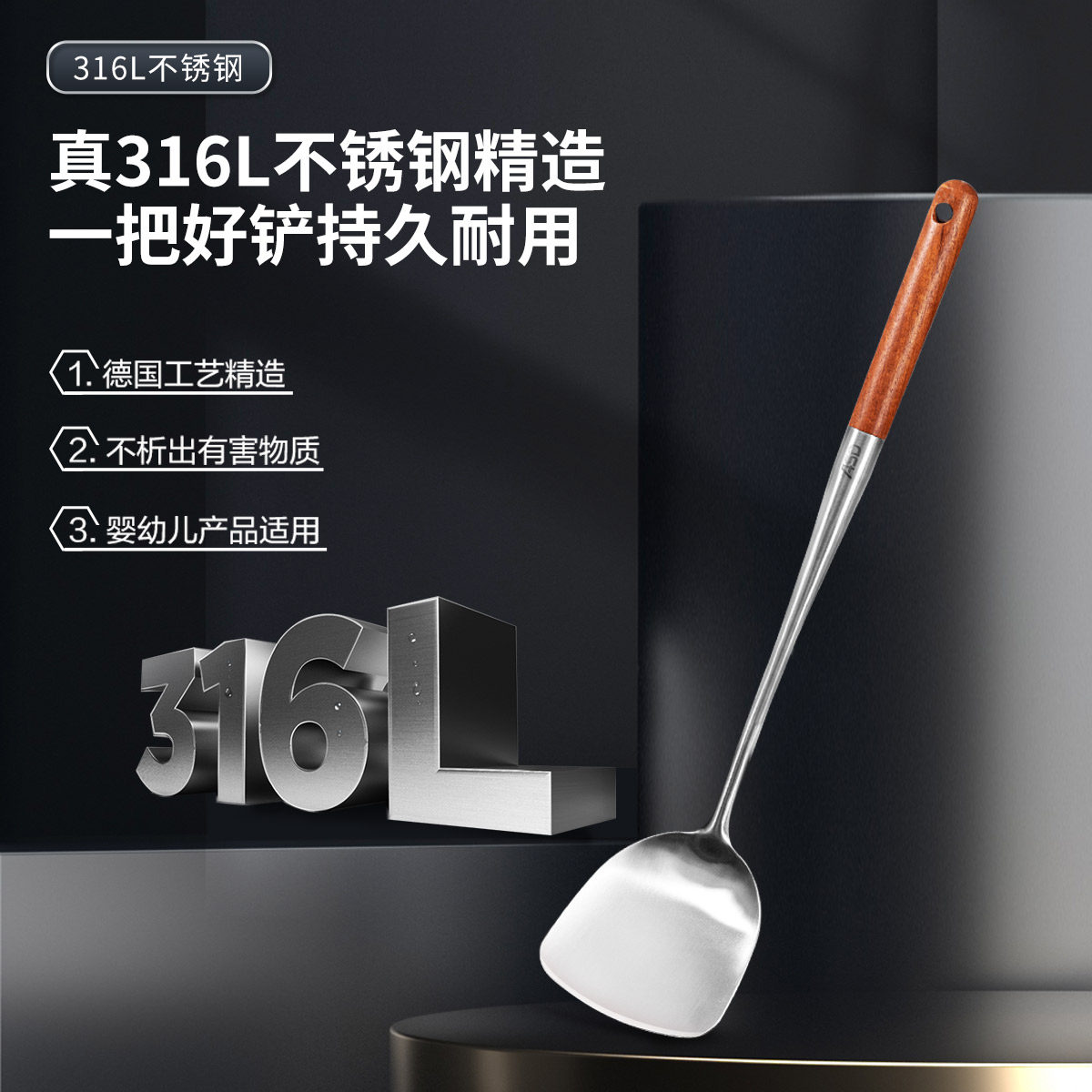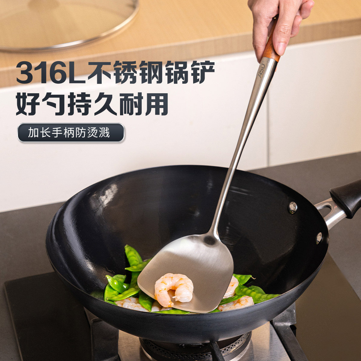 爱仕达锅铲炒菜铲子勺子316L不锈钢加厚长柄厨房厨具铁铲汤勺套装