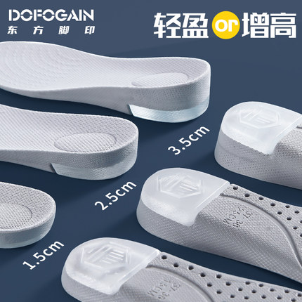 2双 硅胶内增高鞋垫全垫男女减震隐形全掌正高增高垫不累脚小个子