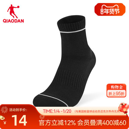 乔丹男子运动中筒袜春季防风保暖防臭跑步运动训练黑色男士袜子