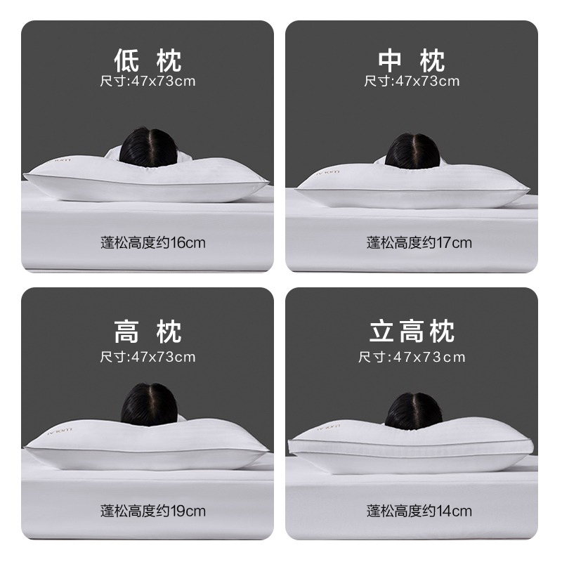 罗莱家纺枕头学生宿舍单人家用可水洗蓬松酒店款低中高枕芯一对