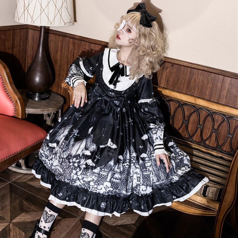 {现货}~原创设计Lolita古堡之夜洋装暗黑系OP长袖连衣裙女