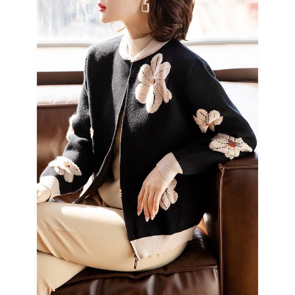 妈妈春装外套短款2025新款中老年女春秋款针织开衫夹克上衣服洋气